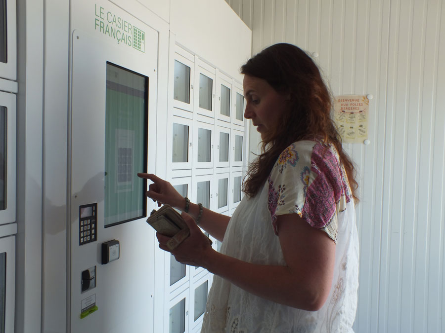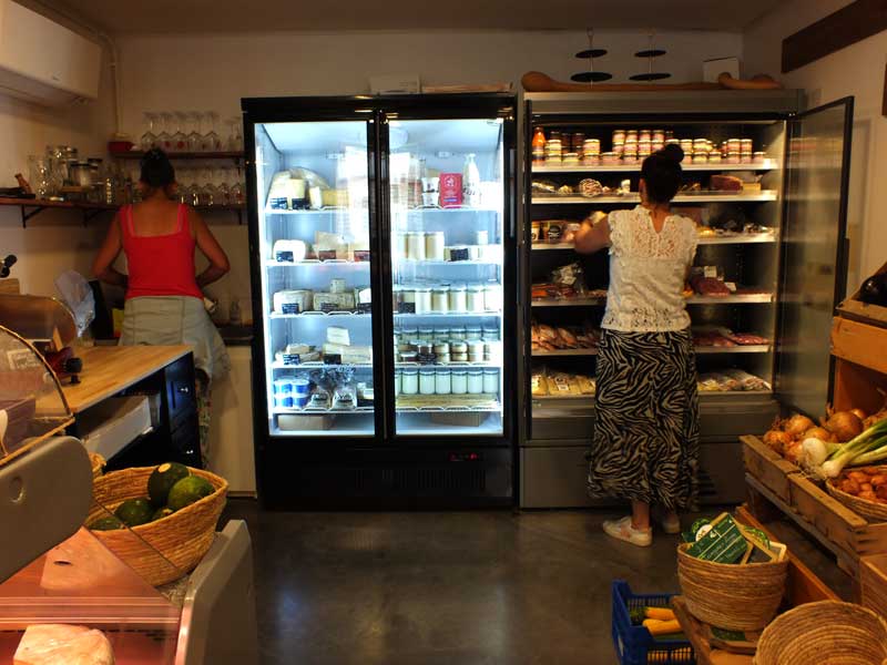 Mais tous les producteurs ne peuvent pas se permettre de faire la livraison aux épiceries du secteur. Il arrive qu’Estelle aille chercher certaines marchandises directement sur place. Situés à Fronton, les Folies Bergères élèvent agneaux et brebis. En arrivant à leur exploitation, Estelle commence par dire bonjour au chien des propriétaires. Puis, elle dépose dans une caisse les pots consignés que ses clients lui ont ramenés. Dans le hall du bâtiment principal, il y a un grand frigo. Ici, les exploitants ne sont pas toujours disponibles pour remettre leur marchandise en main propre aux revendeurs. Ils ont donc installé une sorte d’armoire réfrigérée à case. Pour pouvoir récupérer ses produits, Estelle tape sur la tablette le code qui déverrouille son emplacement. Dans le frigo, la spécialité phare de ce producteur à l’Escale de la Save : les yaourts de brebis. “Chouette !” s’exclame la commerçante. “Ils m’ont mis du yaourt au chocolat, c’est le préféré de mon mari !