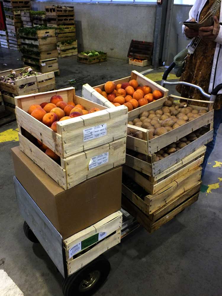 Le chariot d’Estelle Machenaud au Marché d’Intérêt National (MIN). Crédit : Maëlle Barreau
